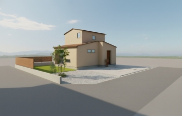 妻屋根を 組み合わ せた2階 建てお家 が完成し ました。