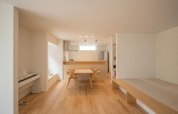 和室は空間にリズ ムを与え 、家族の 気配を感 じながら もそれぞ れの時間 を楽しめ るよう工 夫した間 取り。