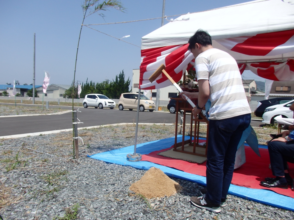 まずはお昼の気持ちいい気候の中執り行われました地鎮祭から!絶好の地鎮祭日和でした(゜_゜>)