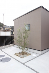 中庭を眺めるインナーガレージの家