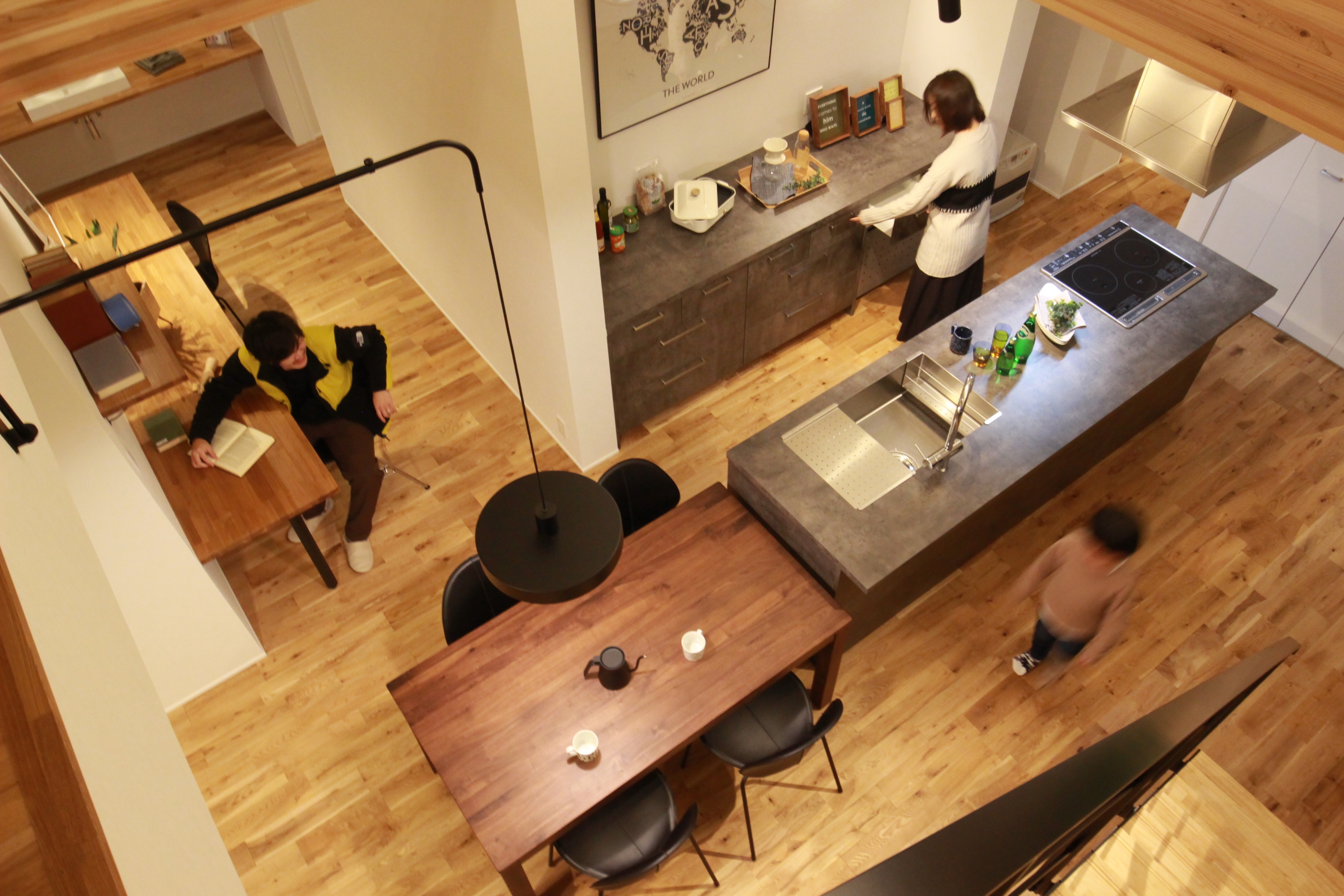 1・2階を吹き抜けで繋ぐ大屋根の家